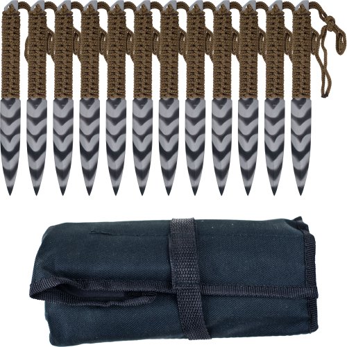 Whetstone Cutlery 25-TK173, Whetstone Cutlery™ Stripeger Dozen set of 12 Throwing Knives is one of Whetstone's premier Ninja throwing knife sets. Honed and balanced to be thrown with confidence. Extended length cord wraps handle and provides stability when thrown. Tiger Striped camo covers the Stainless Steel blade and provides excellent aesthetics and a truly custom look.