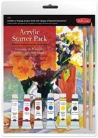 Your First Steps, This acrylic painting kit includes everything beginners need to start painting, with step-by-step art instruction in English and Spanish. After discussing how to use the materials included in the kit, four artists present a variety of step-by-step painting projects that teach different techniques and aspects of acrylic painting. Projects include how to set up and paint a still life, how to paint a seascape and horse portrait and how paint a translucent scene with acrylic washes. The kit contains