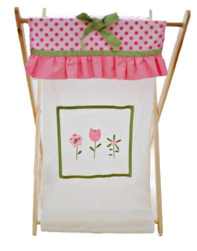 My Baby Sam, At My Baby Sam, our goal is to provide you with a fun, diverse and affordable selection of baby bedding and children’s room décor. We know how hard it can be to coordinate and decide on wall colors, baby bedding and accessories for your nursery. That’s what makes My Baby Sam so unique not only do we provide you with beautiful baby bedding and children’s room décor, we offer inspiration. Tickled pink hamper is white with flowers applique on center panel. The flap is pink polka dot with double band in green trim with pretty pink ruffle and green bow.