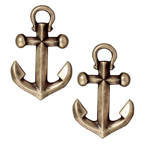 TierraCast , Brass Oxide Finish. 19.5mm Anchor Charm. Lead-free Tierracast Pewter. 2 Charms. From TierraCast's Alternatives Collection, brass oxide finish over lead-free pewter. These are not brass stampings, but strong and beautiful castings made with TierraCast's attention to quality. This muted finish is a perfect complement for vintage-inspired designs. The color matches well with some of our other antiqued brass color jewelry components. Charm is 2-sided, same design on both sides. Measurement:19.5mm from top of loop to base, 12mm Wide, 3mm Thick. Loop has 3mm interior diameter. Quantity: 2 Charms TierraCast Pewter is made in the USA, using Lead Free Pewter that exceeds both the CPSC standard and the new California law regulating children's jewelry content. Although all pewter contains trace amounts of lead, the term "lead free pewter" is used to describe pewter that meets the stringent CSPC standard of less than.05% (or 500 parts per million) lead content in pewter.