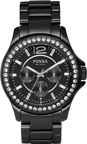 Fossil Ce1011 Riley, Fossil is known for creating brilliant designed earthy tones and textures. In our collection of Fossil watches you can find deep browns; sapphire blue faces; creamy golden designs and much more. There are a multitude of mens and womens watches to choose from some featuring a more modern approach like the Fossil Analog ladies watch to a more traditional design like the Fossil Decker Chronograph mens watch. Looking for a brand that exudes sophisticated style? Then you should look no further than Fossil; the ultimate haven for ladies or gent watches. Shop our collection of these must have watches today.Representing the concept of accessible cool; Fossil�s identity is anchored in vintage authentic style mixed with a creative spirit and a sense of humor that extends into all its product offerings; graphics and one-of-a-kind; trademark collectible tins. Fossil creates modern yet vintage products for everyone; a simple yet compelling idea reflected in the Company's tagline; What Vintage Are You?� Band Color: Black Ceramic; Band Width: 20mm near case; 20mm near clasp/buckle; Bezel Color: Crystals; Case: Black + Circle-shaped; Case Finish: Polished + Ceramic; Case Thickness: 13mm; Case Width: 39mm; 42mm with crown; Clasp / Buckle: Fold Over Push Button Deployment; Dial: Black + analog; Hand Color: Multicolor; Movement: Japanese + quartz; Time Zones: Single With 24 Hour Dial; Water Resistance: 10 atm; Other Features: Day and Date Display