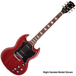 Gibson SGS90HCCH1, A confirmed classic ever since its arrival in 1961, SGs of various types have been played by Pete Townshend, Eric Clapton, Tony Iommi, Frank Zappa, Robby Krieger, Angus Young, Derek Trucks, Jeff Tweedy, and countless other rock, blues and alternative artists. While the SG Standard's original specs included a pair of humbucking pickups, many players have always loved the hot, raw sound of single-coil P-90 pickups, as found on the SG Special and Junior guitars, which otherwise had more austere features. Now Gibson USA introduces the SG Standard With P-90s, which features all the appointments of the Standard model, but is equipped with a pair of authentic P-90 pickups. Finished in your choice of Heritage Cherry or Ebony Blackboth in hand-sprayed, high-gloss nitrocellulose lacquerthe SG Standard With P-90s brings together the features and electronics of two legendary SG models for the first time, and creates a timeless classic in the process.Like the original SGs of the '60s and all of the classic variations since, the Gibson USA SG Standard With P-90s has a body crafted from solid mahogany in the iconic asymmetrical "double-horned" deep double-cutaway design (attractive Grade-A timber is used beneath the translucent finish of the Heritage Cherry guitars). A light and supremely resonant wood, mahogany gives this guitar outstanding tonal richness and depth, with plenty of clarity and sustain. Coupled with the SG's characteristic beveled edgea traditional part of this model's distinctive stylingthe mahogany's light weight also enhances playing comfort. The guitar's quarter-sawn mahogany neck is carved to a rounded profile that feels sublimely comfortable in the hand. It is glued into the body with Gibson's acclaimed mortise-and-tennon neck joint, and topped with a baked maple fingerboard with 22 medium-jumbo frets, dressed in vintage cream binding. Acrylic trapezoid fingerboard inlays, a mother-of-pearl headstock logo and h...