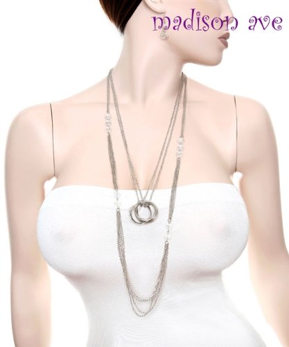 Here are some of the great features of Double Ring Silver Tone Chain & Beads Necklace & Earring Set